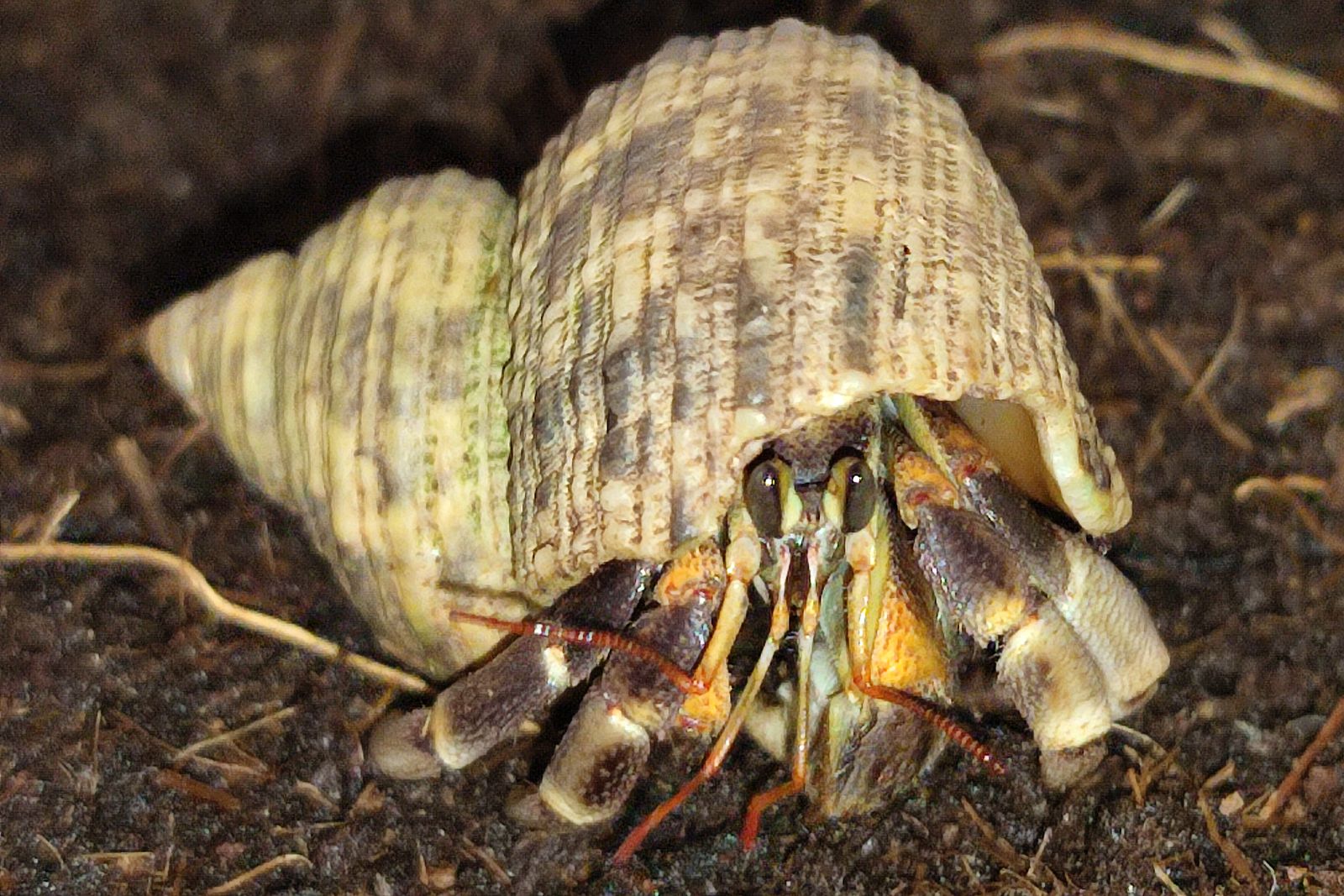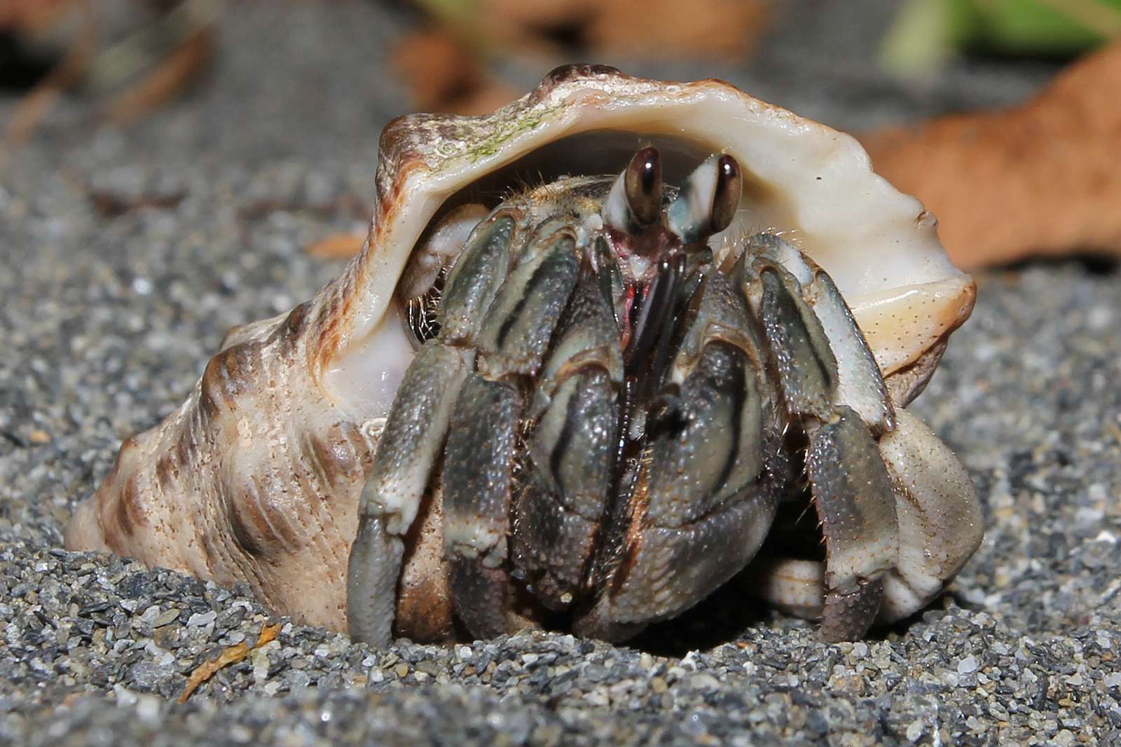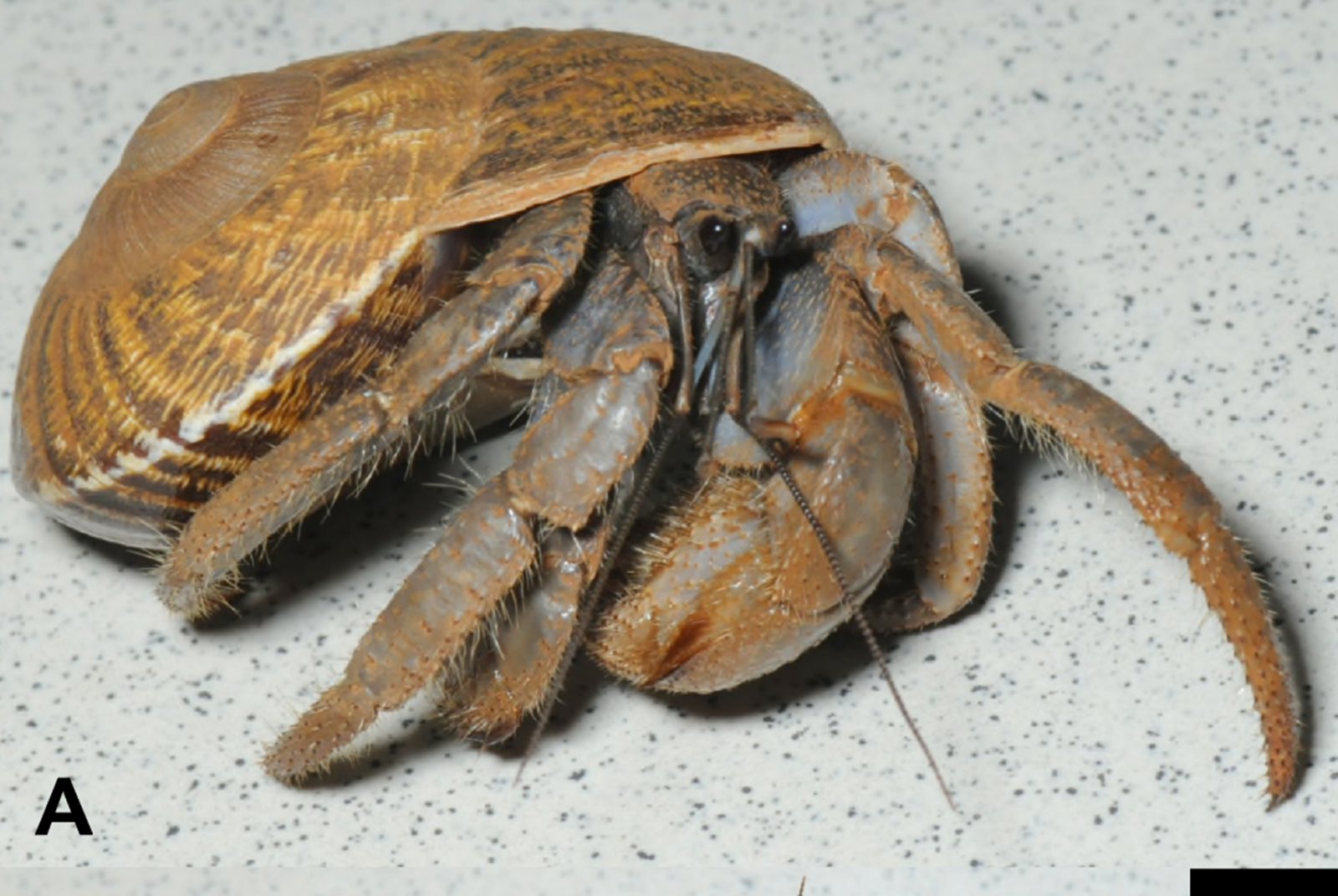 5F. Appearance very similar to Coenobita cavipes, but 3rd leg very thin and long → Coenobita longitarsis