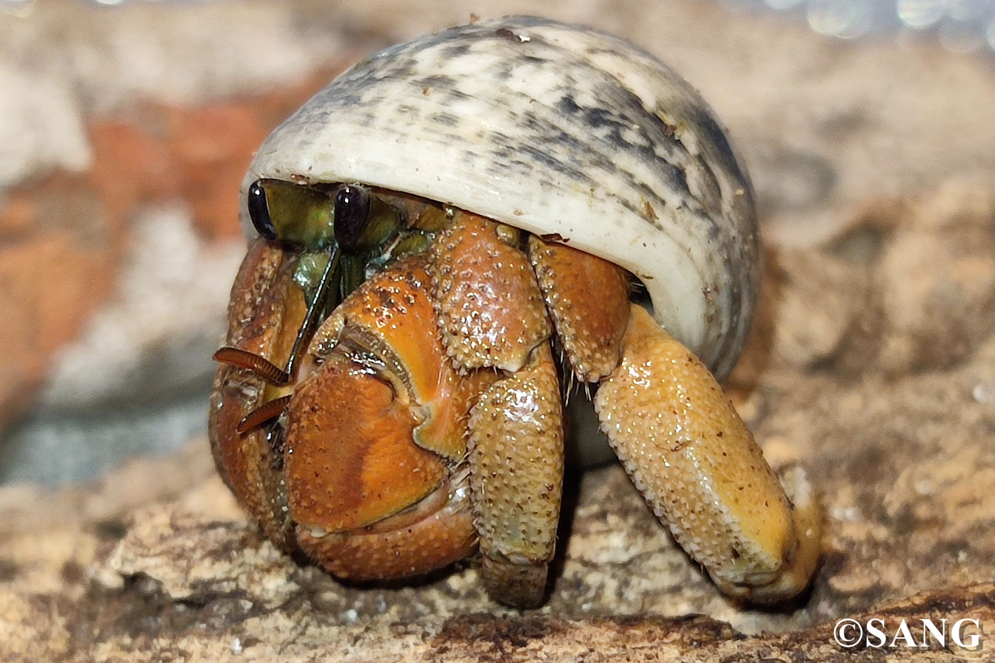 3D. Big comma shape eyes, boby colour brown tone → Coenobita compressus